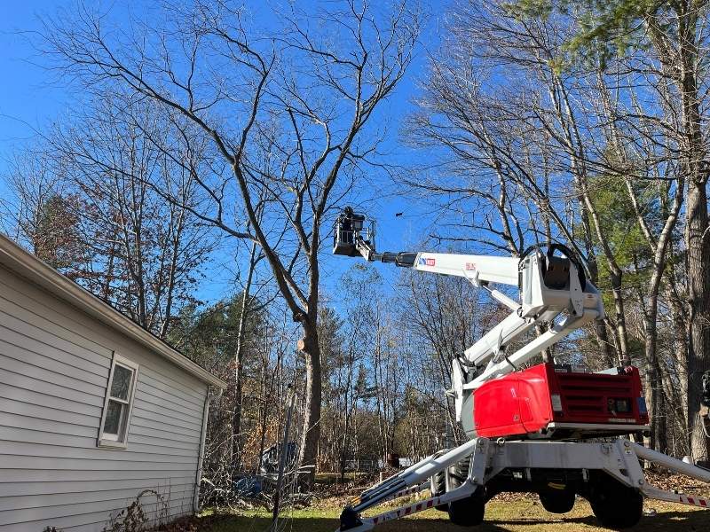 Lift-Assisted Tree Removal Near Residential Area in Nashua, NH